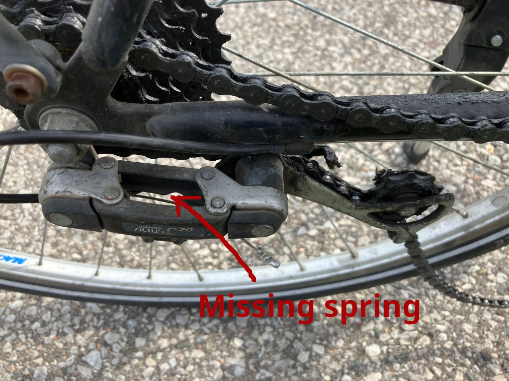 On a late 2025 ride, the spring snapped on my rear derailleur, leaving my bike un-rideable. I walked to the nearest bus stop and took the bus home.